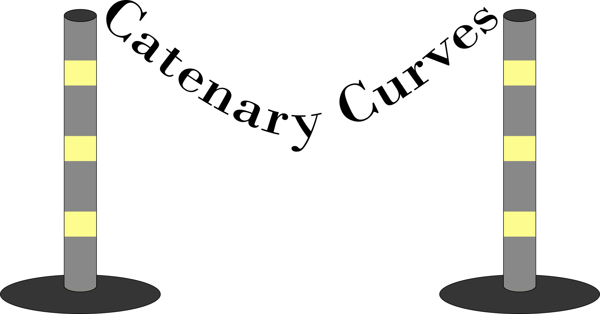 As the picture may have suggested, a catenary is the shape of a rope hanging between two points that aren’t directly above or below each other. This means that every roped-off area, power line, clothes line, hammock (not including ropes) or even untied shoelace, among many other things, are all catenaries.